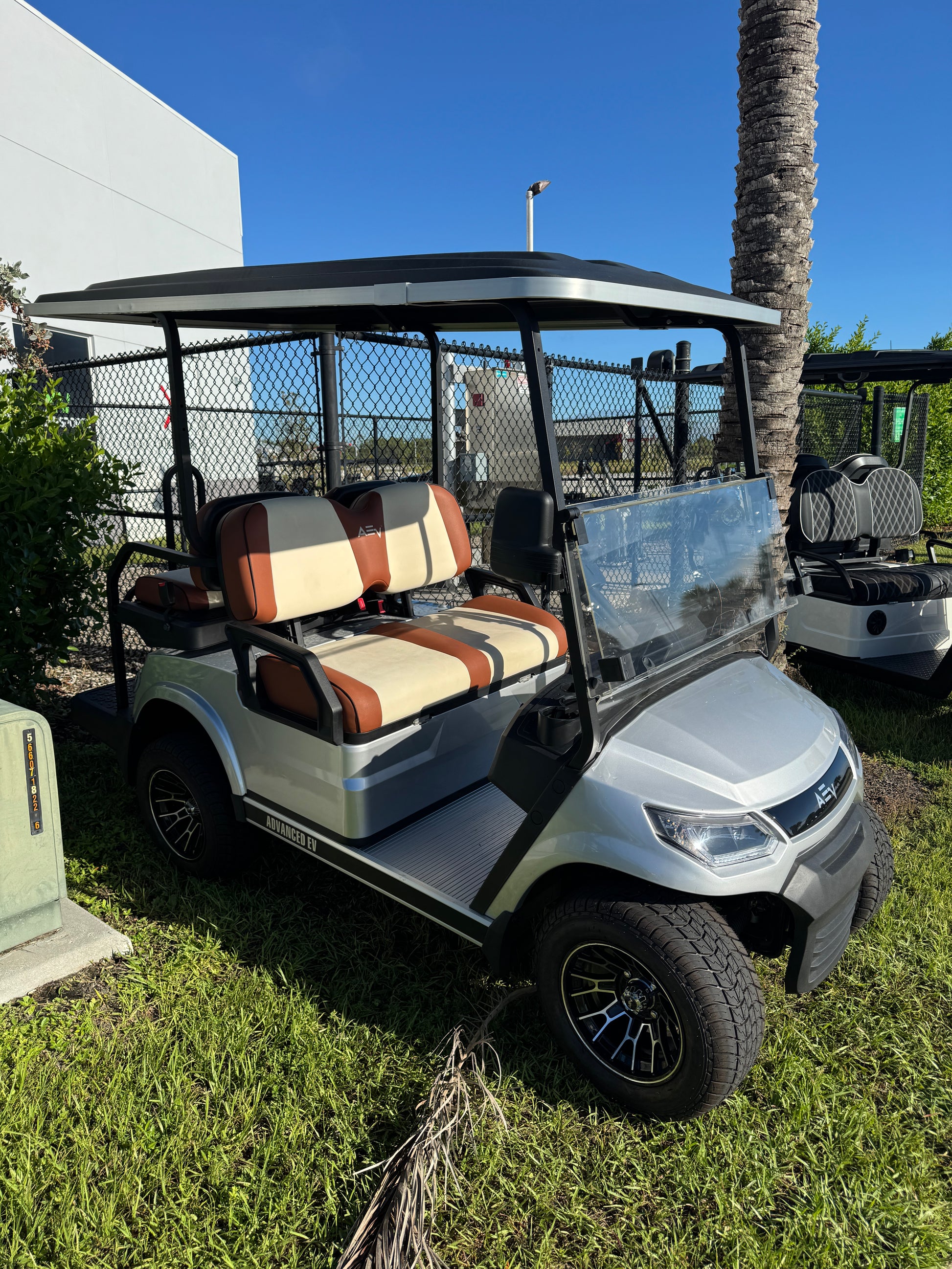 Brand new Advanced EV Advent 4 Golf Cart. 4 passenger, 10 inch touch screen, wireless phone charger, Speakers, rear flip seat kit, 105ah lithium battery with 8 year warranty from Eco Battery and more!